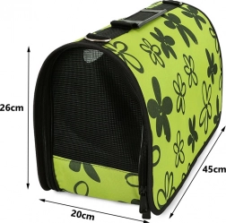 Zelena prevozna torba s cvetličnim vzorcem je idealna za potovanje s hišnimi ljubljenčki. Zahvaljujoč udobnemu ročaju in nastavljivemu ramenskemu traku jo enostavno prenesete kamorkoli.
