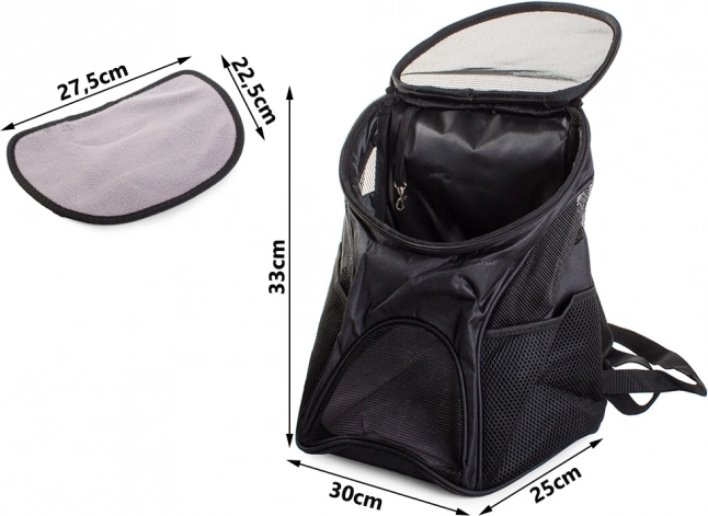 Nahrbtnik se odpira zgoraj z zadrgo in vsebuje odstranljivo oblogo za enostavno vzdrževanje. Vgrajeni mrežasti elementi zagotavljajo dobro kroženje zraka, kar prispeva k udobju vašega hišnega ljubljenčka.