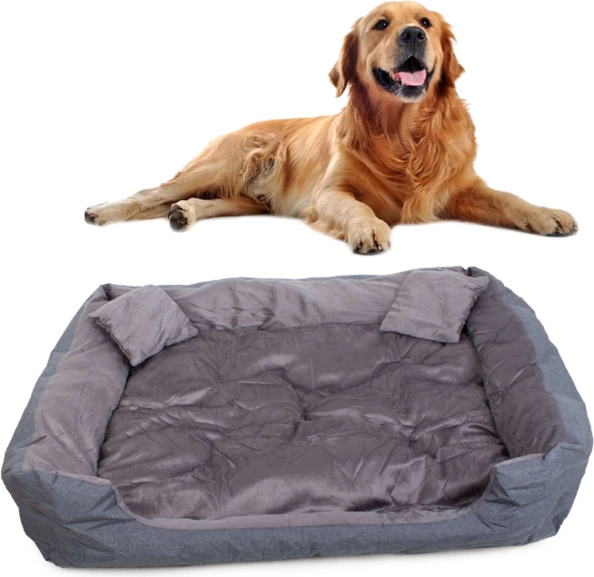 Privoščite svojemu ljubljenčku maksimalno udobje s tem prostornim ležalnikom XXL. Izdelan je iz trpežnega in vodoodpornega materiala, ima odstranljiv mehak vzglavnik, priložena pa sta tudi dva majhna blazinica za še več udobja. Enostaven za čiščenje, odporen proti praskam in odlična izbira za pse ter druge hišne ljubljenčke.