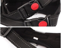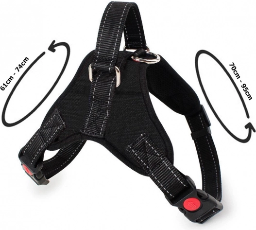 Močan kovinski D-obroč za povodec, priročen zgornji ročaj in zaponke z varovalom proti nenamernemu odpenjanju zagotavljajo zanesljiv nadzor nad psom v vseh pogojih.