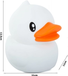 Otroška nočna lučka v obliki račke je iz mehkega in na otip prijetnega silikona. Odporna na padce in stiskanje, služi kot nočna svetilka in mehka plišasta igračka primerna za posteljo. Odlična za otroke, ki se bojijo teme.