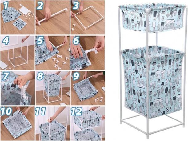 Koš na perilo je zasnovan za maksimalno funkcionalnost in uporabnost. Zaradi svoje univerzalne konstrukcije ga je možno uporabljati v dveh različnih različicah: z zgornjo polico ali kot en velik koš. Narejen je iz kakovostne plastike in vodoodporne tkanine, kar zagotavlja dolgo življenjsko dobo in preprosto vzdrževanje.
