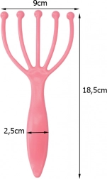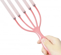 Kombinacija plastike in kovine zagotavlja dolgo življenjsko dobo in zanesljivost. Masažna naprava je opremljena s petimi fleksibilnimi rokami, ki se končajo s kovinskimi kroglicami. Ta zasnova omogoča enostavno uporabo negovalnih pripravkov na lasišču.
