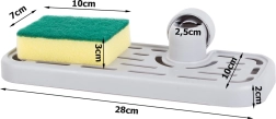 Organizator za korito s polico je praktična rešitev za vzdrževanje čistoče v vaši kuhinji. Enostavno ga je namestiti in je odporen na vodo, kar zagotavlja dolgo življenjsko dobo. Preprost, a funkcionalen dizajn omogoča odtekanje odvečne vode neposredno v korito, kar ohranja gobice in druga sredstva suha.