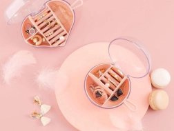 Več velikosti predelkov in vgrajena držala za prstane poskrbijo, da je nakit urejen in brez zapletanja.