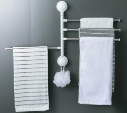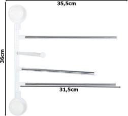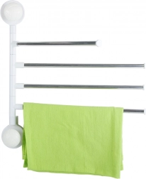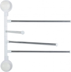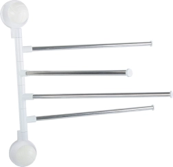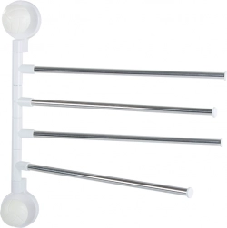 Praktičen stenski nosilec za brisače s štirimi izklopnimi kraki poskrbi, da so vaše brisače vedno pri roki in hitro suhe. Vsak krak lahko posamično zavrtite, zato med brisačami kroži zrak in ne nastaja nepotreben nered. Minimalistična kombinacija kovinskih palic in bele plastične osnove se odlično poda tako modernim kot klasičnim kopalnicam.