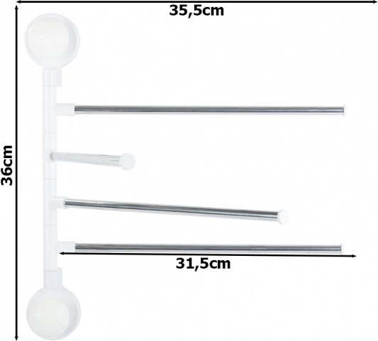 • Prihranek prostora: štirje vrtljivi kraki za brisače ali kuhinjske krpe.
