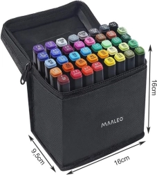 Vzdržljiv tekstilni etui drži vseh 40 markerjev pregledno in varno. Kompaktne mere 16 × 16 × 9,5 cm olajšajo shranjevanje in potovanje.