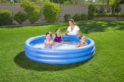 Napihljiv otroški bazen z dimenzijami 183x33 cm se enostavno prilega vaši vrtu ali terasi in ga je enostavno napolniti z vodo. Zaradi treh krožnih plasti je bazen trden in stabilen, idealen za varno igro vaših otrok. Bazen je opremljen z reparaturnim kompletom, ki zagotavlja hitro popravilo morebitnih manjših poškodb.