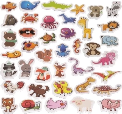 Komplet 40 magnetov z živalmi spremeni vsaka kovinska vrata ali tablo v ustvarjalen prostor. Vsak magnet je barvit, z imenom živali v angleščini za nevsiljivo utrjevanje besedišča. Zahvaljujoč močnemu magnetu zanesljivo drži nakupovalni seznam, fotografijo ali otroško risbo, obenem pa deluje kot stilska dekoracija hladilnika.
