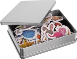 Del kompleta je eleganten kovinski etui, ki olajša shranjevanje in prenašanje celotne kolekcije. Magnetki so idealni za dom, vrtec in otroško sobo – spodbujajo ustvarjalno igro, pripovedovanje zgodb in razvoj fine motorike.