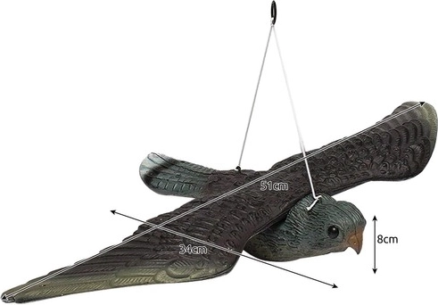Predstavljamo vam realistično imitacijo sokola, učinkovito orodje za odganjanje ptic iz vaše okolice. Izdelana je natančno do podrobnosti, vključno z podrobno izdelanimi krili in perjem, kar deluje na ptice kot naravni plenilec.