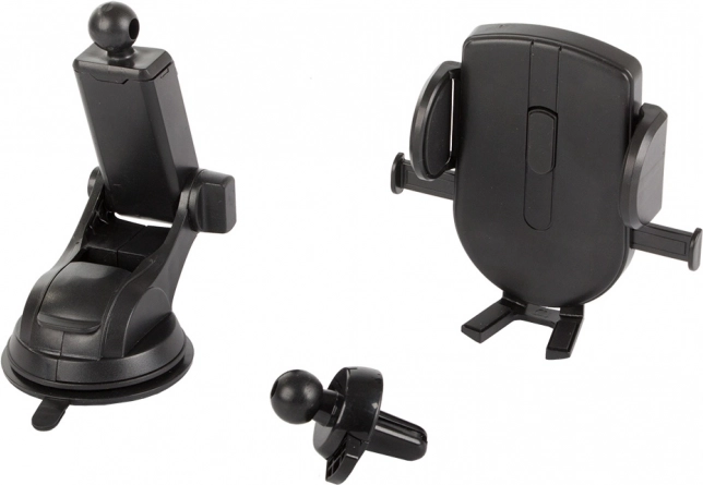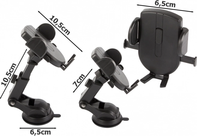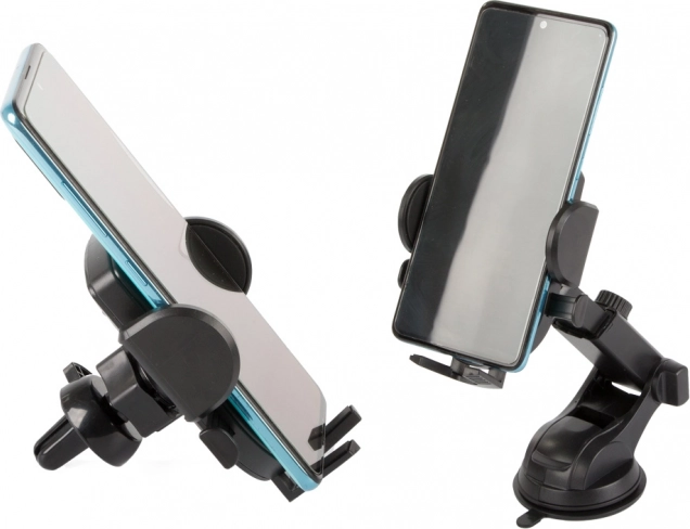 Univerzalen avtomobilski nosilec z močnim priseskom za varno namestitev na vetrobransko steklo ali armaturno ploščo. Njegova preprosta montaža in nastavljiv kot zagotavljata maksimalno udobje pri uporabi.