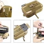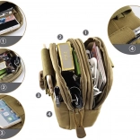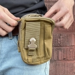 Kompakten taktični pasni etui s sistemom MOLLE je idealen za pohodništvo, kampiranje in vsakodnevno nošenje. Ponuja 2 glavna predelka na zadrgo, več žepov za pregledno organizacijo ter sprednji držalo za telefon z nastavljivim trakom. Trpežen, vodoodporen material in močni šivi ščitijo vaše stvari, oblazinjena notranjost pa blaži udarce. Možno ga je pritrditi na pas, nahrbtnik ali karabiner.