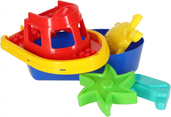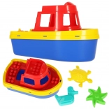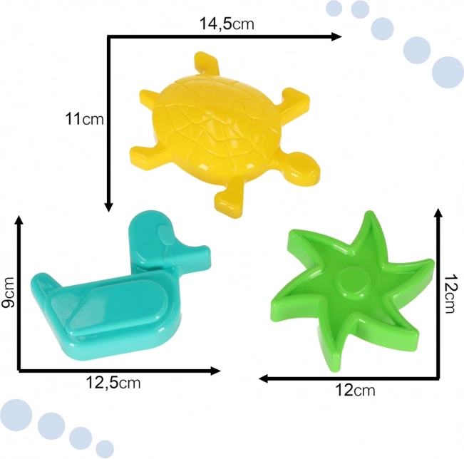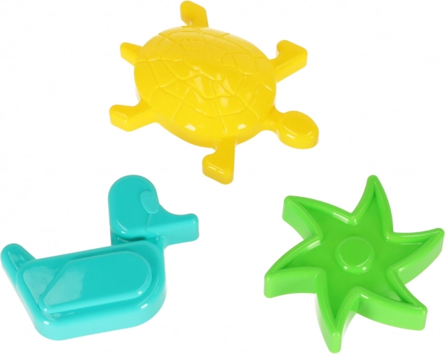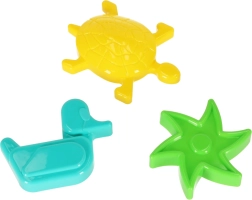 Uživajte v ustvarjalni igri v pesku in vodi. Komplet ponuja multifunkcionalen čoln, ki ga preprosto razstavite na tri dele in uporabite kot velik model, ali pa ga pustite, da pluje po površini. Trije izrazito barvni modelčki – zvezda, račka in želva – pomagajo otrokom ustvarjati lepe oblike ter razvijati domišljijo in fino motoriko.