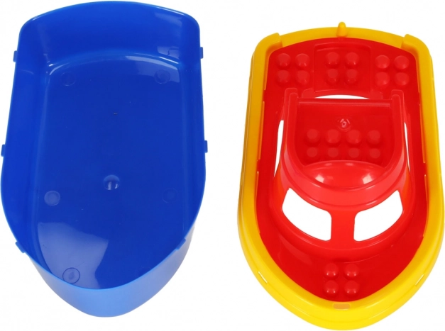 Razstavljen čoln na tri dele služi kot velik modelček za pesek in kot plavajoča igrača za vodo – idealno za plažo, bazen in kad.