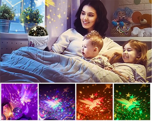 - Pomirjujoča projekcija zvezd in lune za boljši spanec otrok.