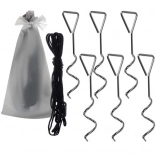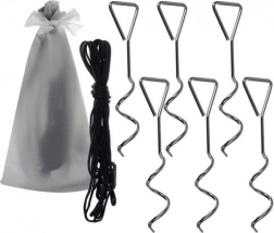 Paket vključuje klini, vrvice in torbo, ki pomagajo šotor trdno držati na tleh tudi v vetru.