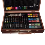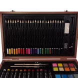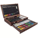 Bogat umetniški set v lesenem kovčku Maaleo nudi vse potrebno za začetnike in izkušene umetnike. Vsebuje 129 delov, vključno z različnimi vrstami barv, barvic in drugimi pripomočki za ustvarjanje edinstvenih umetnin.
