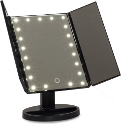 Iščete popolno ogledalo za vsakodnevni make-up, kozmetično rutino ali vstavljanje kontaktnih leč? To namizno LED ogledalo s stranskimi krili nudi enakomerno osvetlitev zahvaljujoč 22 LED diodam in omogoča natančno povečavo 2x in 3x za podrobno delo. Na dotik občutljivo stikalo neposredno na površini ogledala omogoča hitro in udobno vklapljanje svetlobe, medtem ko zadnje stikalo doda dodatno kontrolo.
