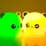 Prisrčna otroška nočna lučka v obliki pande iz mehkega silikona prinaša prijetno, pomirjujočo svetlobo v vsak otroški kotiček. Enostavno jo upravljate z dotikom ali s potrkanjem, ponuja 5 barvnih načinov, vključno s postopnim prehajanjem RGB, in je zaradi napajanja na 3× AAA baterije idealna za nočno omarico ali posteljo. Ohišje je zlahka pralno, material pa vzdržljiv, varen in brez ostrih robov.