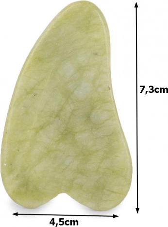 Redna uporaba nefritne masažne ploščice izrazito izboljša krvni obtok, zmanjša vidnost por in zmanjšuje zabuhlost pod očmi. Nefrit omejuje nastanek gub ter pomaga ohranjati kožo čvrsto in prožno.