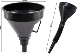 Ta velik plastičen lijak je zasnovan tako, da olajša točenje tekočih materialov v rezervoarje in druge posode z ozkim grlom. Izdelan iz trpežnih materialov, ki so odporni proti škodljivim kemikalijam, zagotavlja dolgotrajno vzdržljivost in zanesljivost.