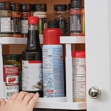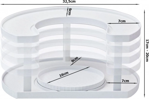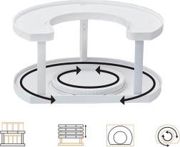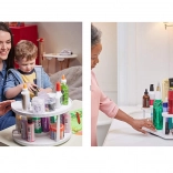 Vrtljivi mehanizem omogoča hitro iskanje in jemanje želene začimbe ali kozmetike brez prestavljanja celotne police.