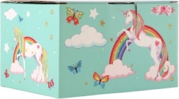Trden karton s kovinskim zapiranjem in tečaji zagotavlja dolgo življenjsko dobo. Pastelno zeleni motivi mavrice, zvezdic in metuljev čudovito okrasijo vsako otroško sobo.