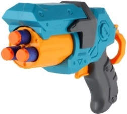 Paket vsebuje vse, kar potrebujete za igro: 1× pištola in 3× penasti naboj. Penaste puščice so mehke in varne za igro v notranjih prostorih in na prostem. Zahvaljujoč ergonomskemu ročaju pištola dobro leži v roki in otrokom hitro priraste k srcu.