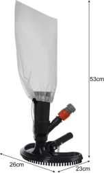 Lahek in učinkovit sesalnik za dno bazena BIGSTREN uporablja vodni tlak iz vrtne cevi za hitro odstranjevanje nečistoč. Zahvaljujoč preprostemu priklopu z hitrim spojem in večkrat uporabni filtrirni vrečki je čiščenje bazena, masažne kadi ali ribnika maksimalno udobno in varčno. Trde ščetke in praktična polmesečna oblika učinkovito odstranijo obloge brez napornega drgnjenja.