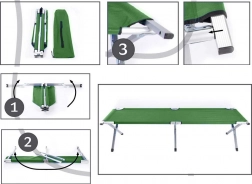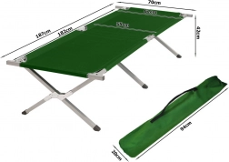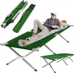 Uživajte v udobju tudi na poti. Ta zelena zložljiva taborniška postelja združuje stabilen kovinski okvir z vzdržljivo poliestrsko prevleko, ki je prijetna na dotik in enostavna za čiščenje. Zaradi premišljene X-konstrukcije je ležalnik čvrst in zanesljiv, hkrati pa ohranja nizko težo in odlično zložljivost.
