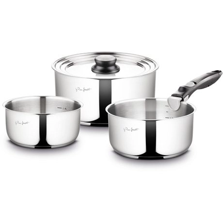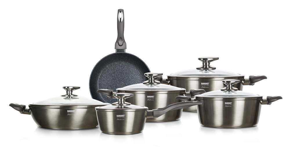 Za zahtevne kuharje so na voljo kompleti loncev, ponv in kozic z enakomerno porazdelitvijo toplote, debelim sendvič dnom, neprijemljivo prevleko brez PFOA in ergonomskimi ročaji. Primerno za indukcijo, plin in steklokeramiko, pogosto tudi za v pečico. Praktične podrobnosti, kot so steklene pokrovke s parnim ventilom, merilna lestvica v notranjosti ali zložljive oblike, prihranijo prostor in naredijo kuhanje čisto veselje.
