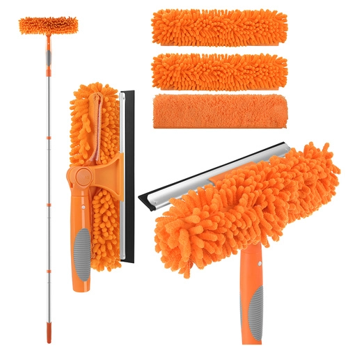 Mikrovlakna z visoko vpojnostjo vpijajo prah in maščobo, ne puščajo vlaken in varčujejo s čistili; abrazivne gobice se spopadejo s prismodami; mehke brisalke s prožno gumo obrišejo steklo do kristalnega sijaja. Primerno za steklo, nerjaveče jeklo, keramiko, ploščice, laminat in les: ergonomski ročaji in teleskopske palice olajšajo delo na višini, ščetke s trdimi in mehkimi ščetinami so nežne do površin, prevleke za mopa so pralne in odporne na čistila za dolgo življenjsko dobo. Za vsakodnevno čiščenje in temeljito generalno čiščenje: peresnik za prah z antistatičnimi vlakni za pohištvo in žaluzije, ščetke za fuge za kopalnico, strgala za steklokeramiko, ščetke za steklenice, brisalke za tuš kabine, gumijaste rokavice, smetišnica in zajemalka. Zahvaljujoč univerzalni uporabi, preprostem vzdrževanju in hitrim rezultatom boste dom ohranili čist in higienski z manj truda.
